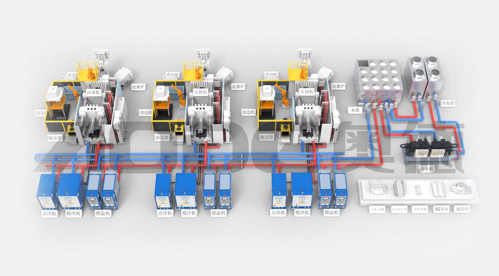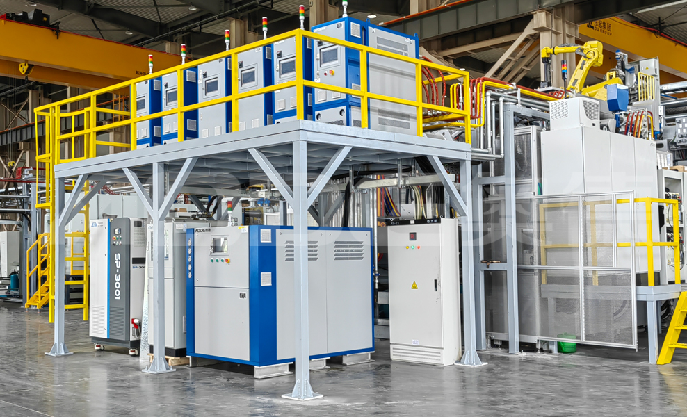 2.压铸温控岛一站式交付:模温机,点冷机,模冷机,冷水机,纯水机,模具管道清洗机.